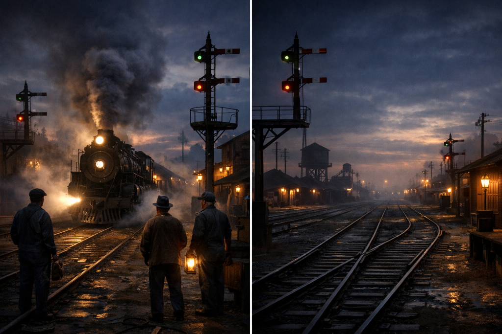 The rail yard still operates in San Bernardino. Tracks converge as they did in 1911. On March 14 of that year, according to written logs and witness statements, a locomotive was both reported passing through the yard and officially recorded as never arriving.